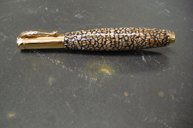 Roller réalisé en coquilles d'oeuf de poule, éléments en placage or 10K.